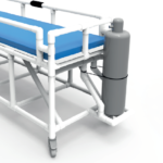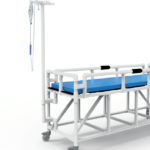 Barella amagnetica in PVC progettata per il trasferimento di pazienti con difficoltĂ di deambulazione allâinterno della zona ad accesso controllato degli ambienti di risonanza magnetica.