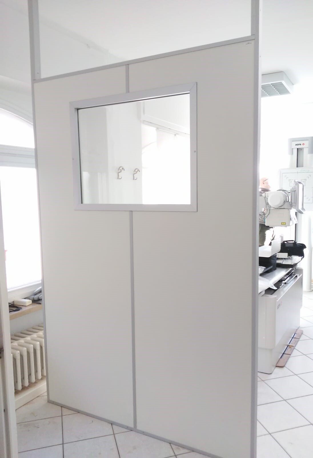 A richiesta la disponibilità di poter installare un cristallo anti-x sul cabinato. Il grado di piombatura del cristallo sarà lo stesso del cabinato. Il fissaggio sul pannello avviene mediante un’apposita cornice in alluminio colore argento.