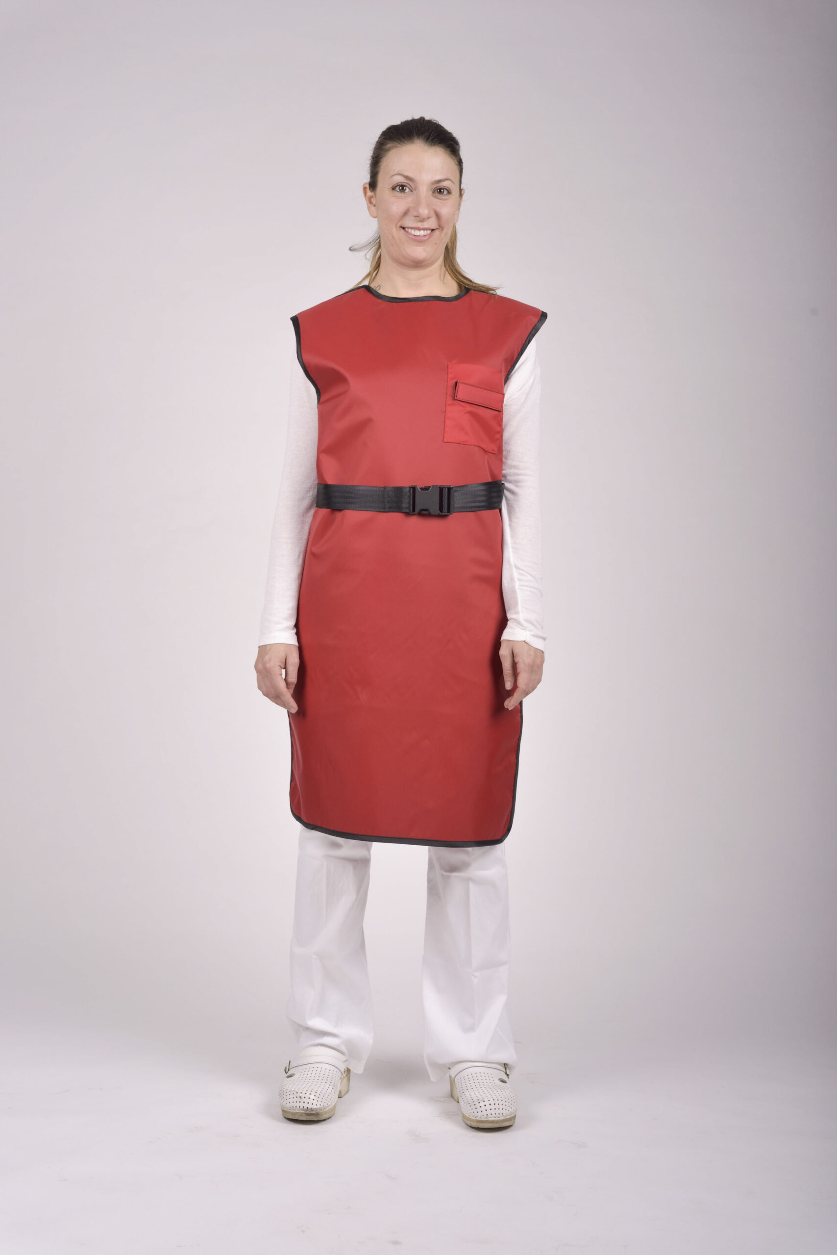 Composti da materiale radioprotettivo con l’aggiunta di metalli che sostituiscono parzialmente il piombo riducendo così il peso rispetto ad un classico grembiule piombato standard.