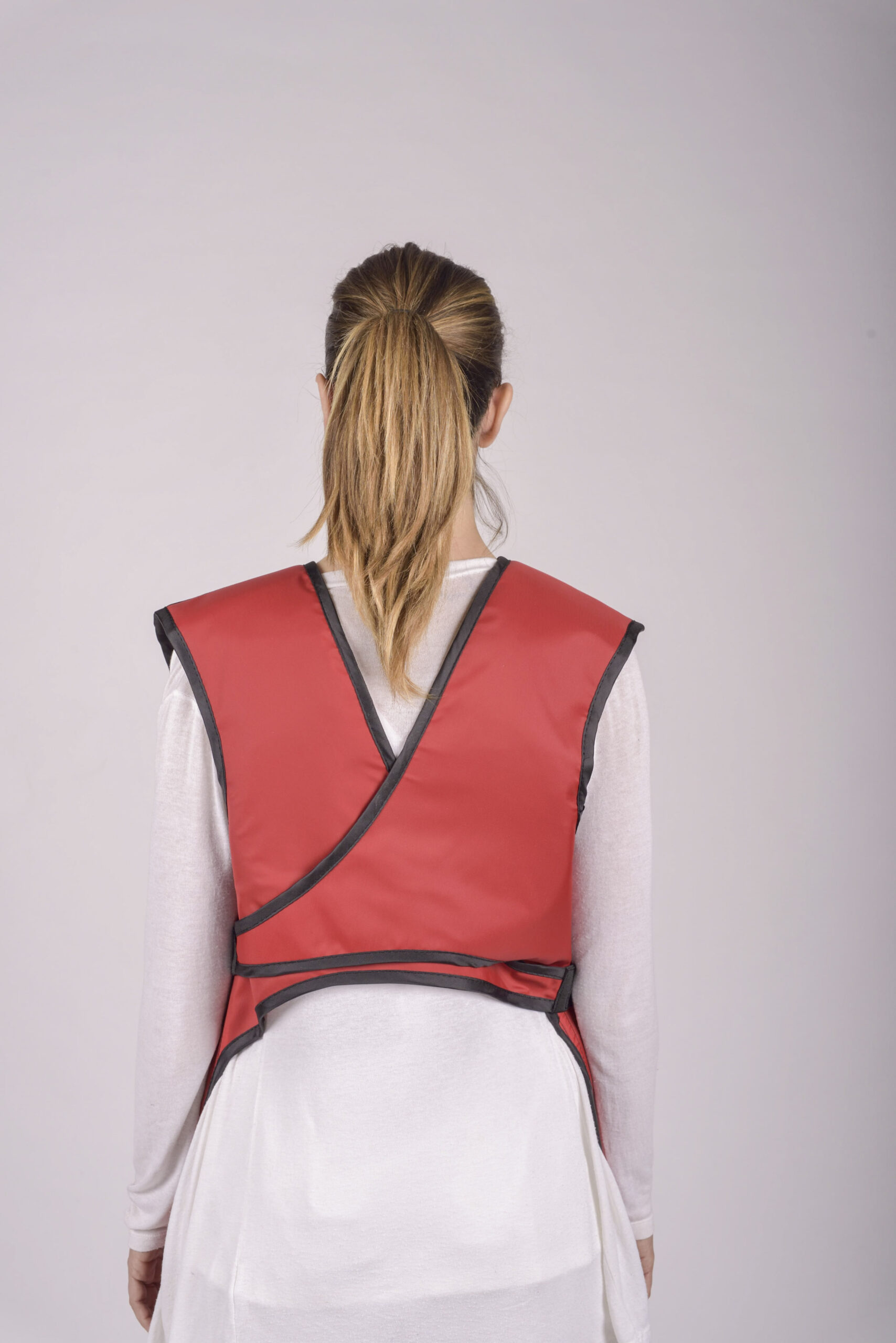 Grembiule anti-x con protezione scapolare che garantisce una protezione totale frontale e scapolare. La parte posteriore è dotata di bretelle incrociate e giro manica per una facile vestizione in piena autonomia. Il design del modello è stato appositamente studiato per consentire all’operatore ampi movimenti e di potersi piegare agevolmente. E’ dotato di spalline imbottite.